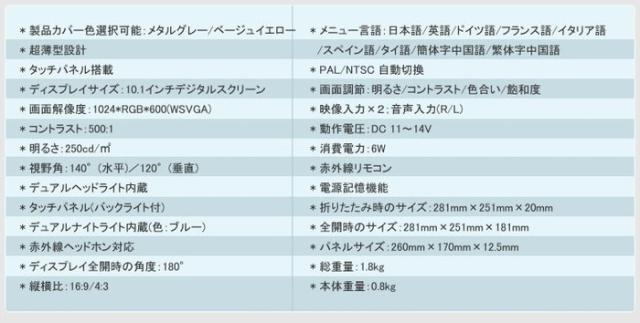 * ディスプレイサイズ:10.1インチデジタルスクリーン
