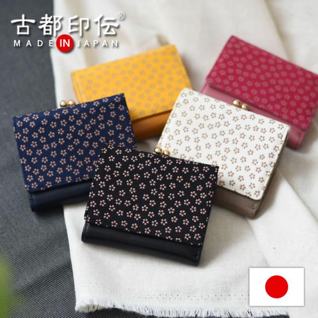 三つ折り財布 小さい財布 レディース 小桜 大人 向け 折りたたみ 極小財布 本革 鹿革 日本製 かわいい 和風 花柄 コザクラ 古都印伝 母の日 ギフト プレゼント【一粒万倍日】