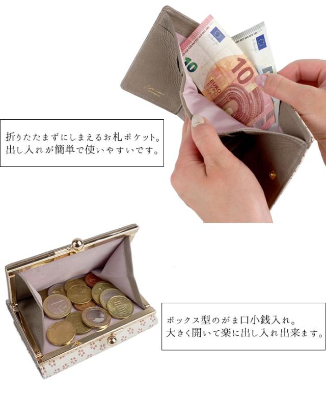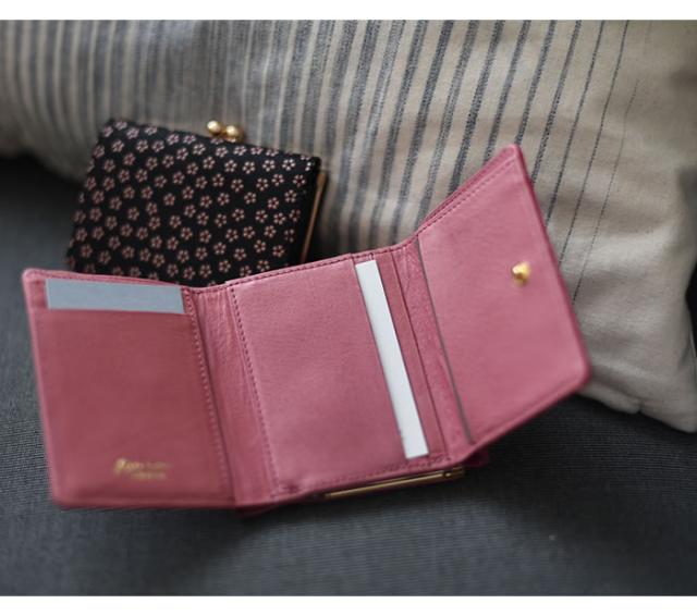 ぱちんと開く口金がアクセントのがま口三つ折り財布。コンパクトにしっかり収納できて使いやすいアイテムです。