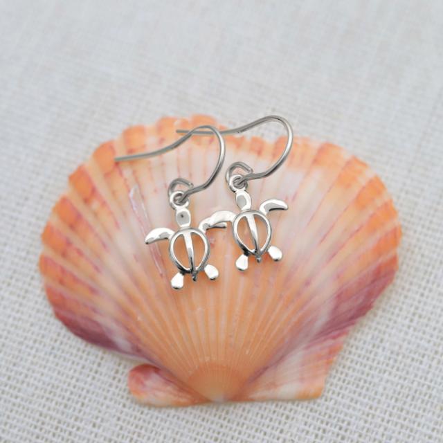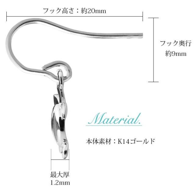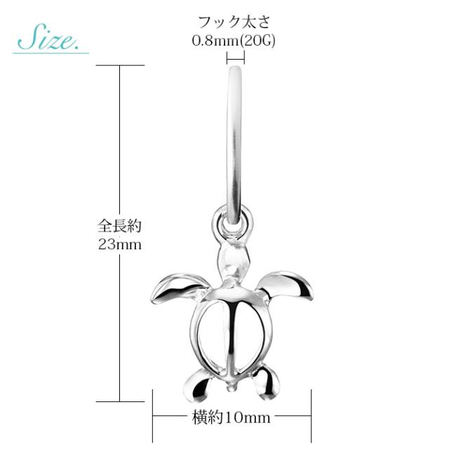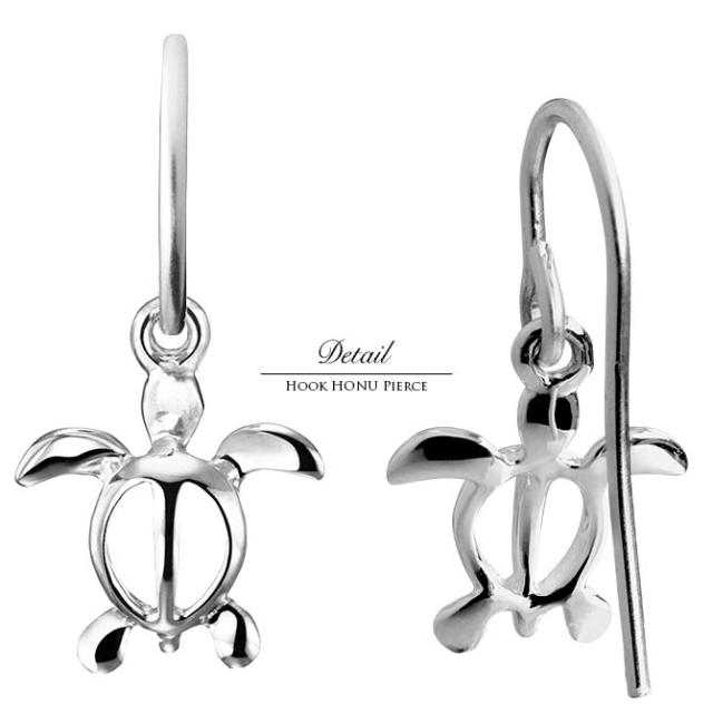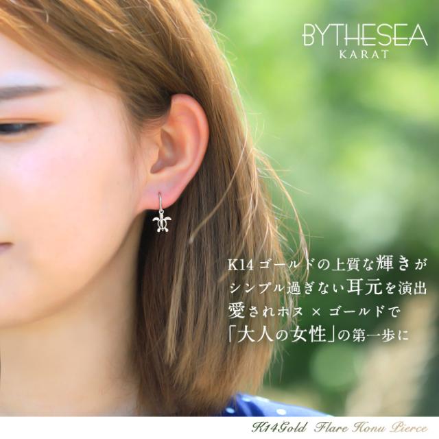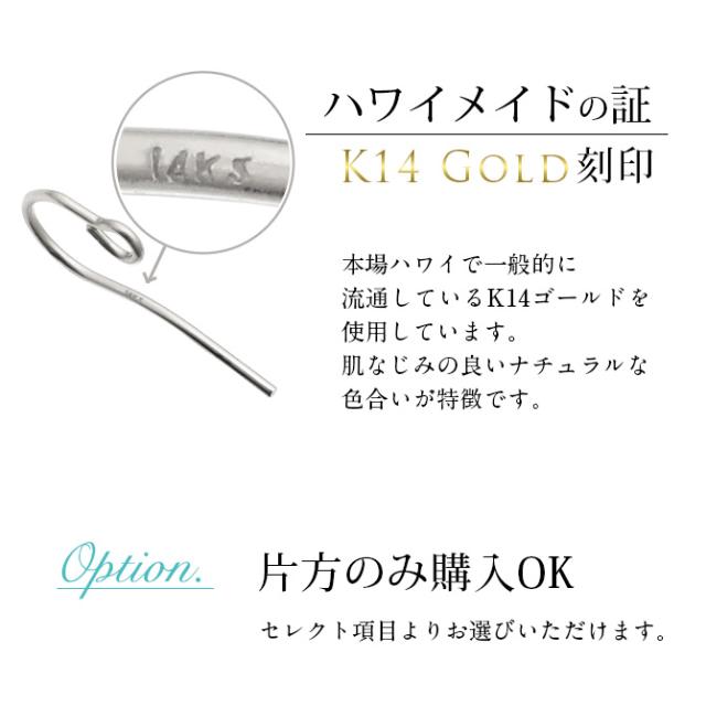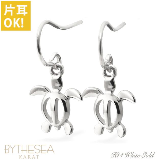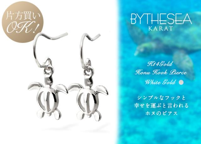 ハワイアンジュエリー ゴールド ピアス ホヌ ホワイトゴールド ピアス 幸せ運ぶホヌピアス フックピアス 揺れる 片耳(1個)購入可 K14 14K 20G ゲージ BY THE SEA バイザシー 彼女 妻 女性 レディース 誕生日 プレゼント クリスマス 【品番:GE531W】