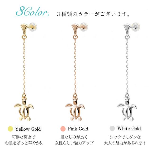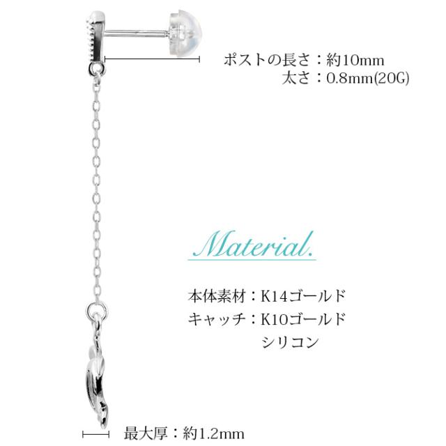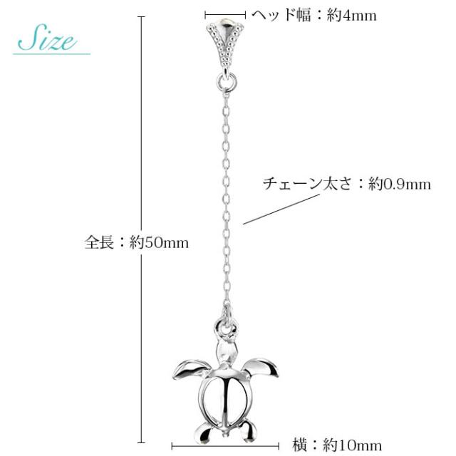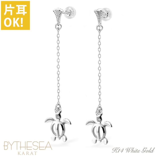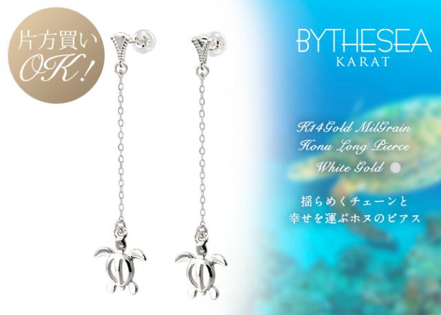 ハワイアンジュエリー ゴールド ピアス ホヌ ホワイトゴールド ピアス ミル打ち 幸せ運ぶホヌ チェーン ミルグレイン 片耳(1個)購入可 K14 14K シリコンキャッチ 20G ゲージ BY THE SEA バイザシー 彼女 妻 女性 レディース プレゼント ホワイトデー 【品番:GE512W】