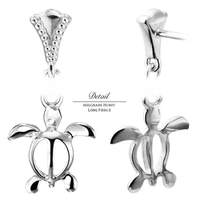 ハワイアンジュエリー ミル打ち ミルグレイン ホヌ ロングピアス