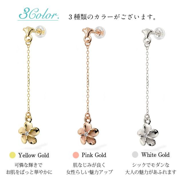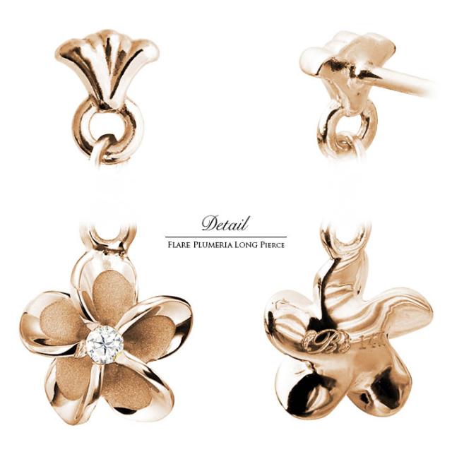 ハワイアンジュエリー ゴールド ピアス プルメリア ピンクゴールド ピアス フレア ジルコニア チェーン 揺れる 片耳(1個)購入可 K14 14K シリコンキャッチ 20G ゲージ BY THE SEA バイザシー 彼女 妻 女性 レディース 誕生日 プレゼント クリスマス 【品番:GE422R】