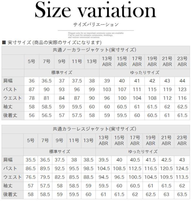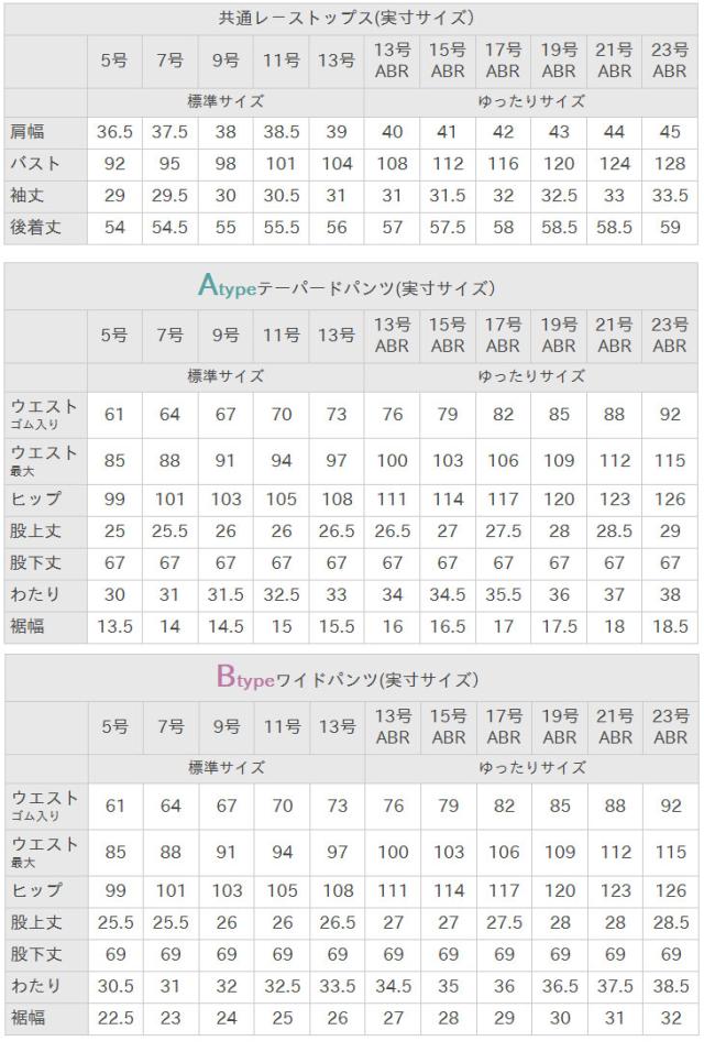 サイズ | 5号・7号・9号・11号・13号・15号・17号・19号・21号・23号 小さいサイズ?大きいサイズ(ラージサイズ)。ゆったりとしたABR体あり |