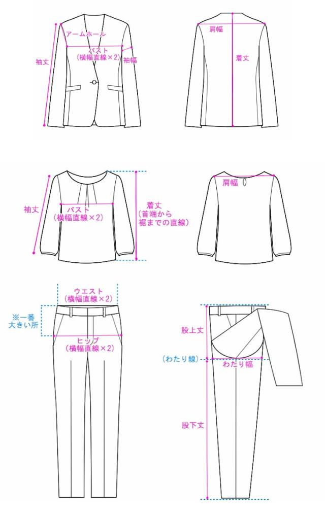 パンツ | ・テーパードパンツまたはワイドパンツ |