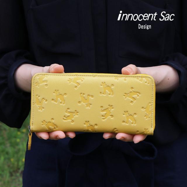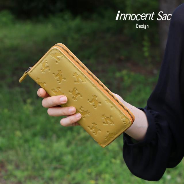 長財布 ラウンドファスナー ロングウォレット 姫路レザー 型押し 猫柄 CAT ネコ innocent Sac イノセントサック 本革 日本製 レディース