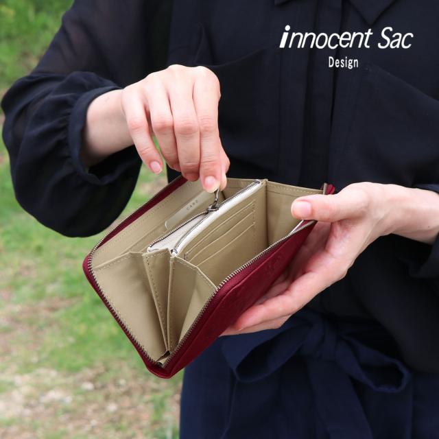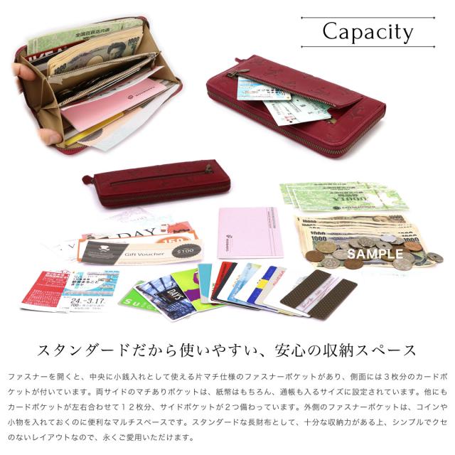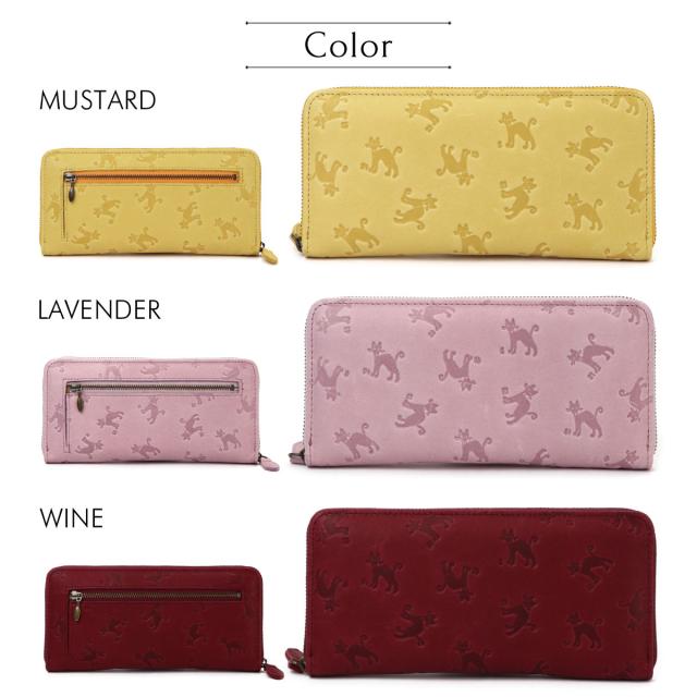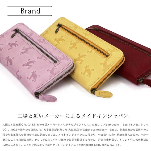 PR:innocent Sac イノセント・サック 丸越 長財布 おさいふ サイフ 財布ロングウォレット ラウンド ラウンドファスナー タンニン クロム コンビ鞣し なめし レザーウォレット 牛革 本革 姫路レザー ソフトレザー 型押し エンボスレザー 猫柄 ネコ CAT 日本製 ハンドメイド ジャパンメイド 国産 おさいふ サイフ レディース 女性用 婦人用 プレゼント ギフト