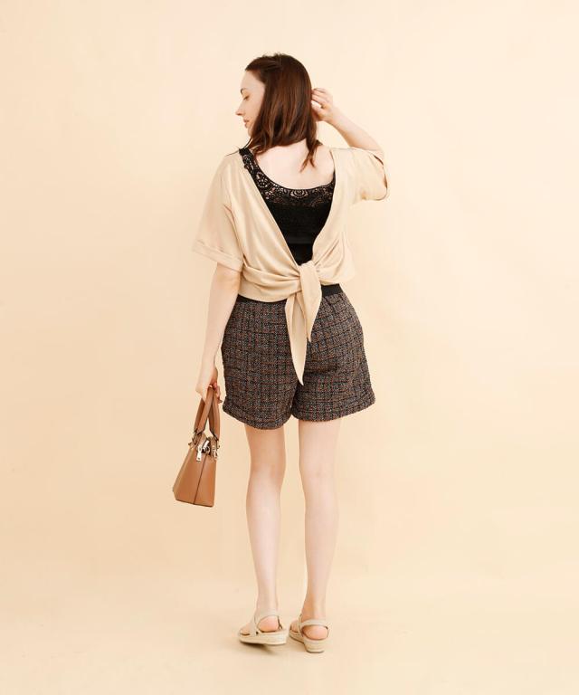 Tシャツカーディガン[2WAY] カーディガン ショート丈 半袖 夏 薄手 前結び 後結び ボレロ Tシャツ トッパー レディース 【BELL】