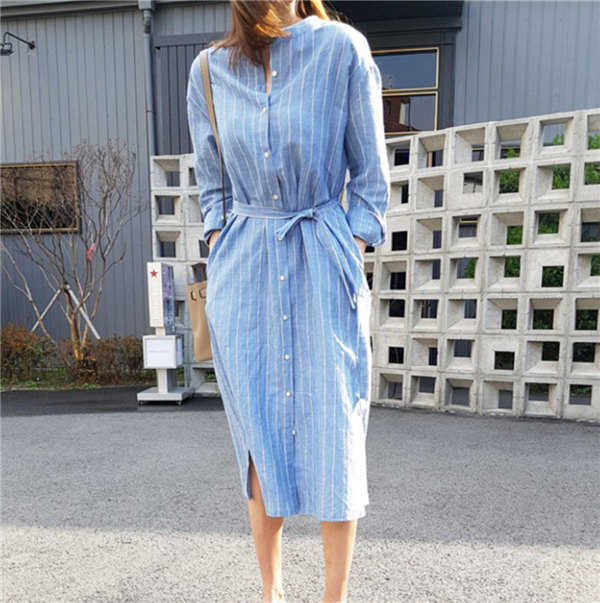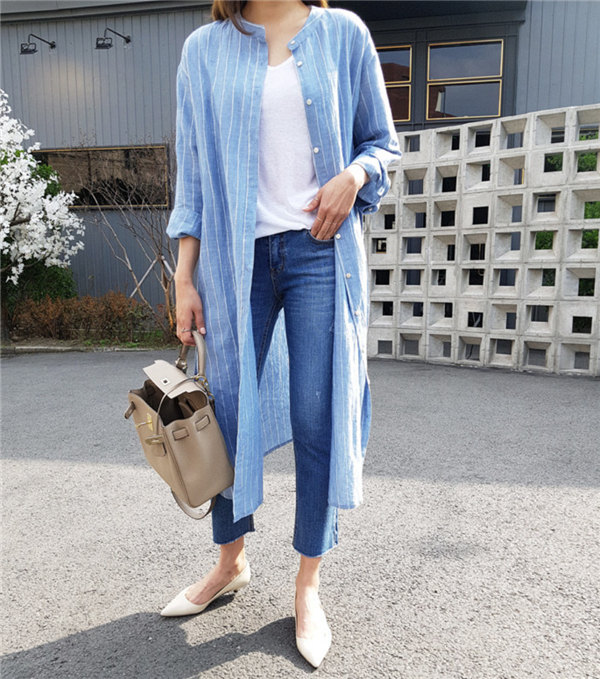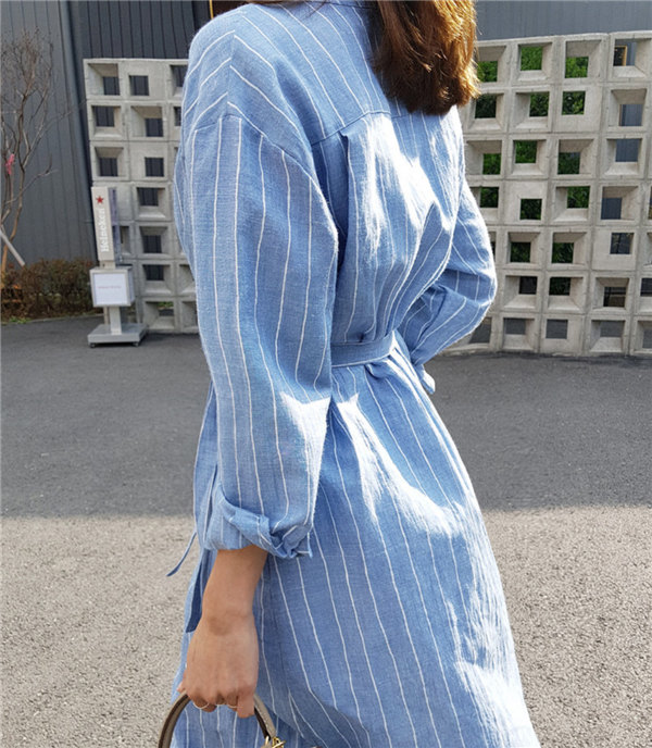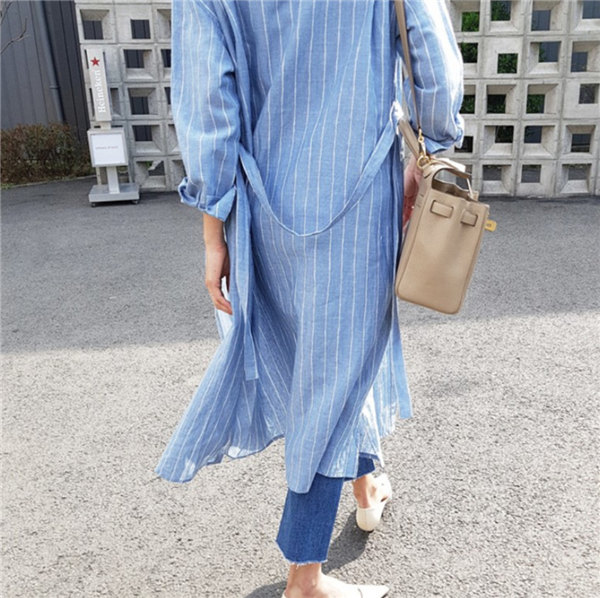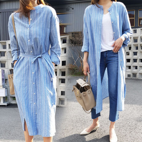 送料無料 ロングカーディガン シャツワンピース ストライプ ロングワンピース ロングシャツ レディース Vネック ロングブラウス 大きいサイズ 長袖 ゆったり