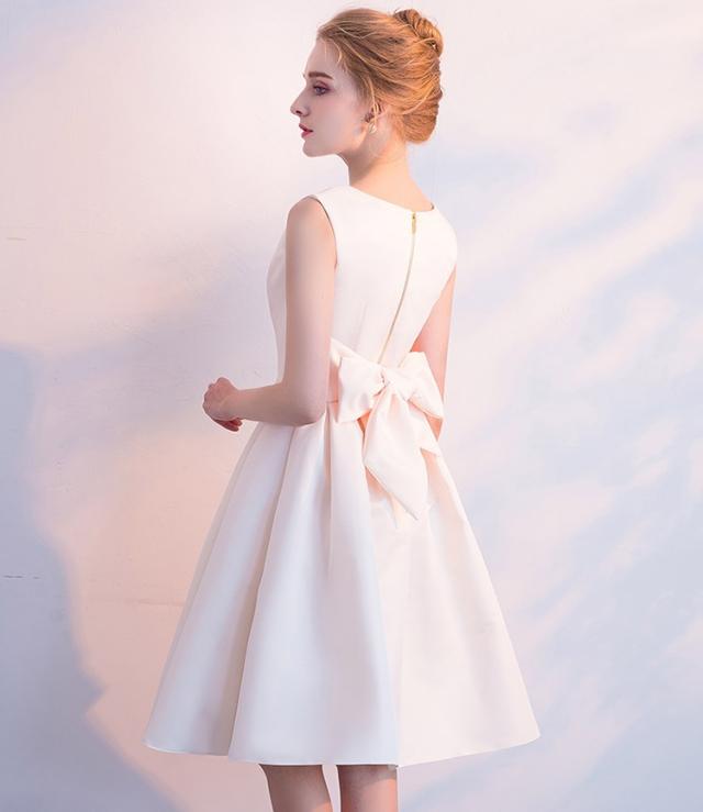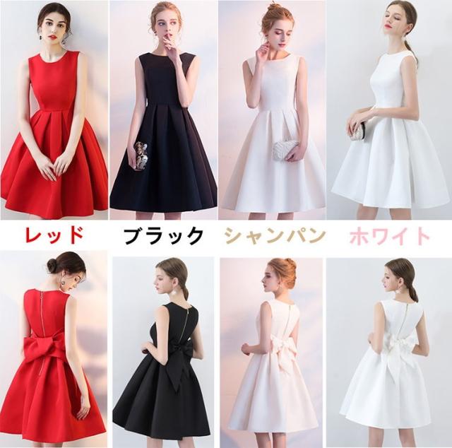 【送料無料】パーティードレス ミニ ドレス 二次会 花嫁 フォーマルドレス 膝丈 ワンピース 結婚式 バックリボン リボンドレスワンピースホワイト ブラック レッド