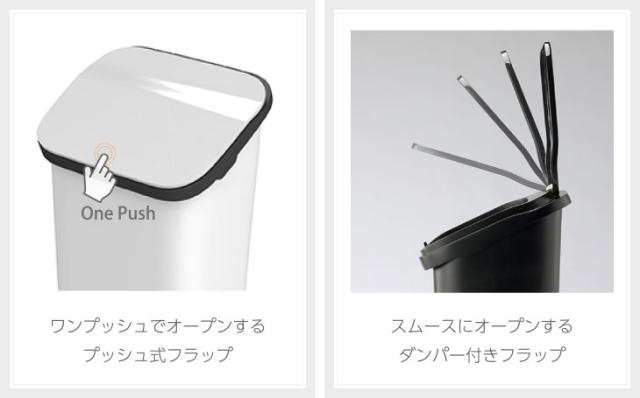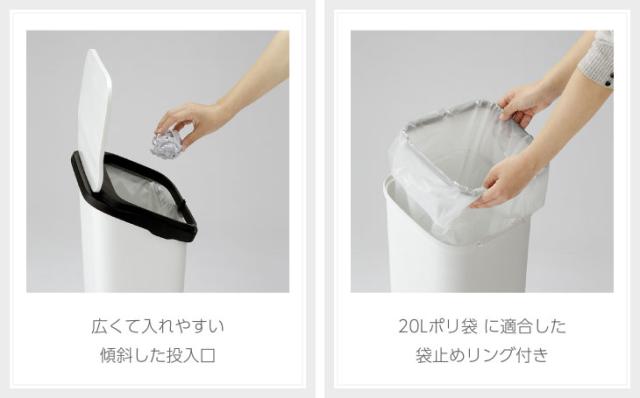 ゴミ箱 スムース プッシュダストボックス 20 【ごみ箱 おしゃれ ゴミ箱 スタイリッシュ smooth くずかご 雑貨 分別 フタ付 プッシュ 白 黒 メタル ウッド 木目 ホワイト ブラック 人気 モダン リビング インテリア 20リットル ゴミ袋 19L】