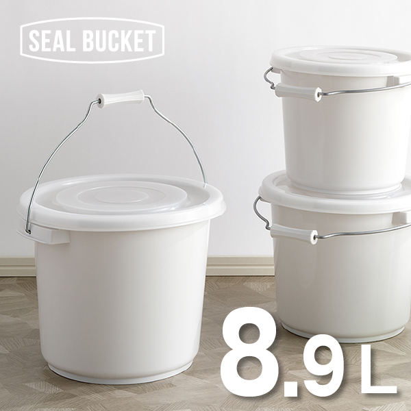 シールバケツ 9型 グレー 【バケツ フタ付 密封 保存 保管 シンプル おむつ ペットフード 生ゴミ ペンキ 作業 におい 白 手持ち 蓋 ふた ばけつ 8.9L リス】
