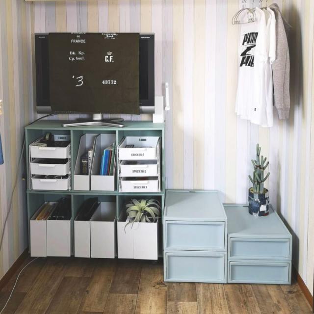 リビングにおいても主役になれます。 どこにでも使える万能さをもった収納ケースです。 プラスチックケースにこだわりの色をつけてちょっとオシャレに仕上げました。 ツヤを消したマットなボディと絶妙なカラーリングは、インテリアとしてもオススメです。靴下やハンカチなど細かいものにちょうど良いSサイズ。生活感を抑える中身が見えないタイプ。