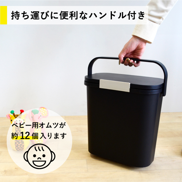 バケツ 運べる防臭ペール 10S おむつ オムツ 子供 赤ちゃん ペット 持ち運び コンパクト【オムツペール ごみ箱 ダストボックス ふた付き フタ付き おしゃれ 防臭 オムツ おむつ 臭わない 匂わない スリム パッキン 10L】