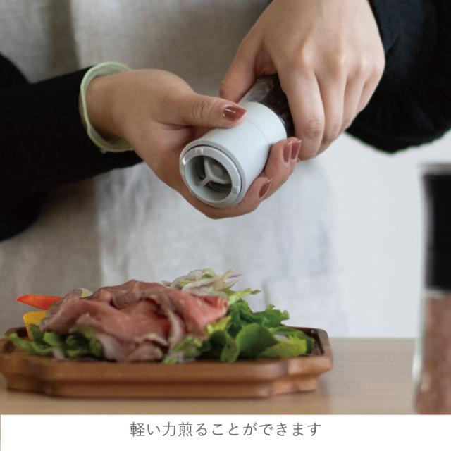 | キャップ/AS フタ上部・ダイヤル部/ABS フタ下部/PP 臼刃/セラミック 本体/ソーダガラス |