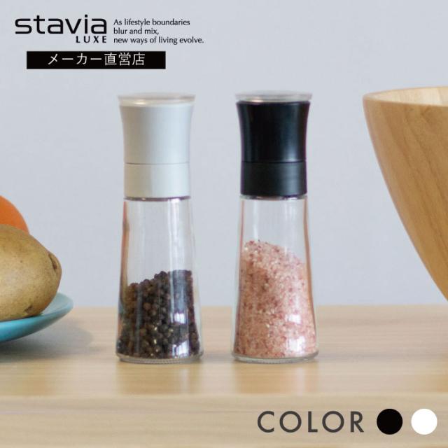スタビアリュクス ペッパー&ソルトミルM 【stavia LUXE ペッパーミル ペッパー ソルト ミル 胡椒挽き 胡椒ひき キッチン 小物 ガラス製 おしゃれ シンプル デザイン 黒 白 ブラック ホワイト Mサイズ リス】