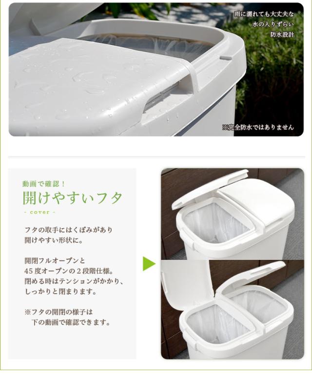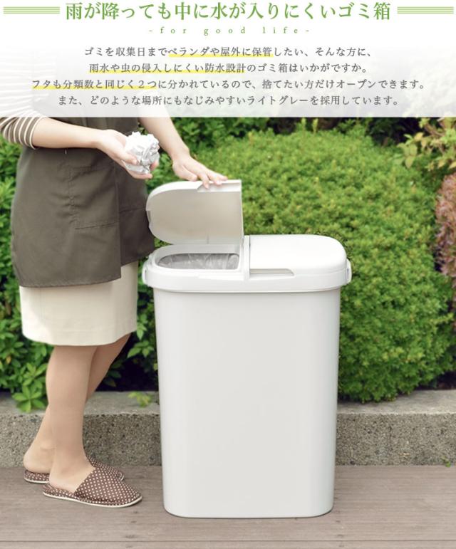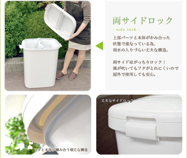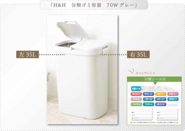 H&H分類ゴミ容器 70W グレー 【分別 ごみ箱 ゴミ箱 屋外 ベランダ 外用 フタ付き ダストボックス ポリ袋止め付 2分別 ワイド 大型 大容量 74L 灰色 リス】