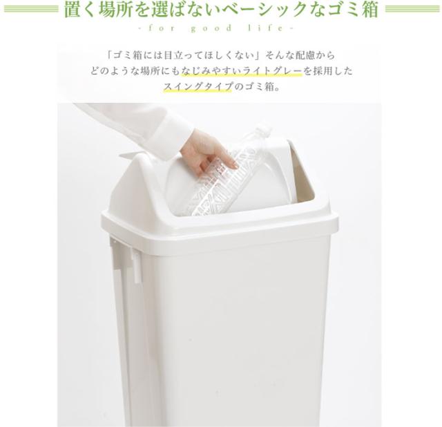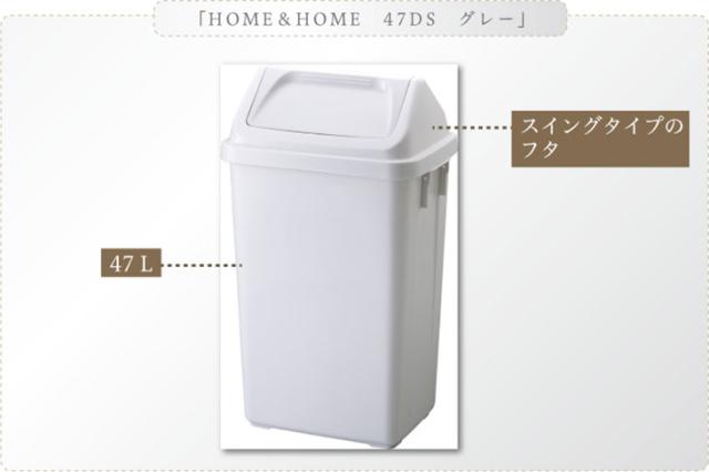 HOME&HOME47DS グレー 【ゴミ箱 ごみ箱 ダストボックス スイング蓋 ふた付き 45L 45リットル 灰色 おしゃれ キッチン 四角 スクエア プッシュ グレイ シンプル オフィス 会社 リス】