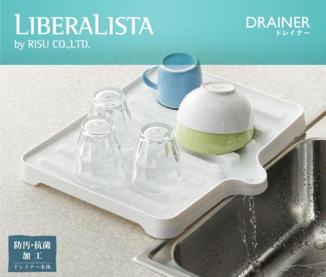 リベラリスタ ドレイナー【水切りカゴ 水切りかご 水切りラック 水切りトレー ディッシュラック シンク ラック 水切りセット 水が流れる おしゃれ デザイン 横置き 清潔感 白 ホワイト Liberalista リス】