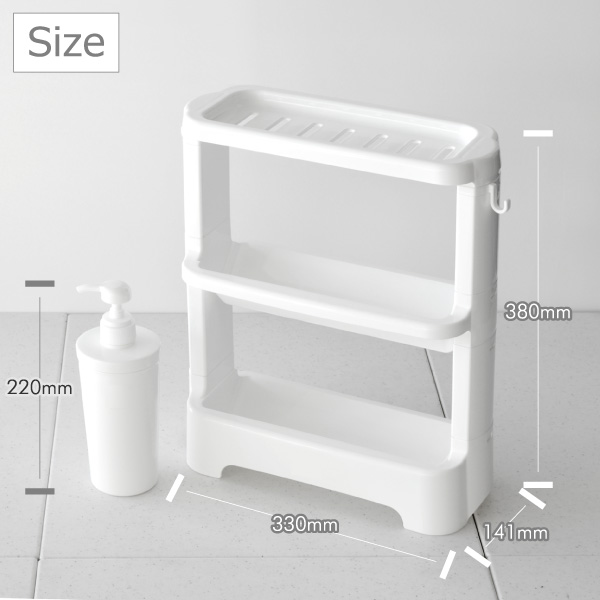 シャンプーラック,シャンプーボトル保管,シャンプー,ソープボトル,3段,収納,棚,アジャスター付,フック付,白,ピンク,青,緑,ホワイト,グリーン,ブルー,セール,リス