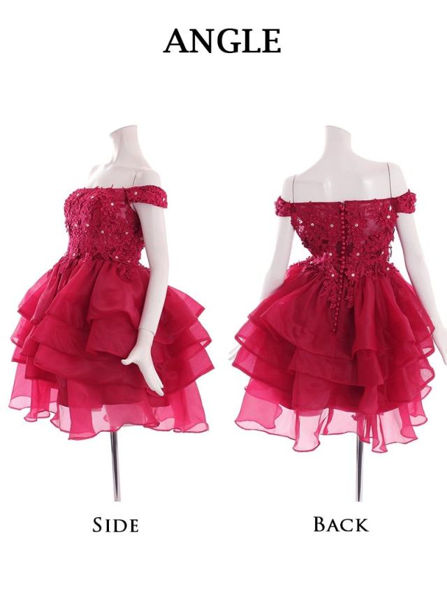 ミニドレス Ryuyu レース オーガンジー 肩魅せ ミニ Aライン キャバ ドレス キャバドレス ミニドレス ミニ キャバク