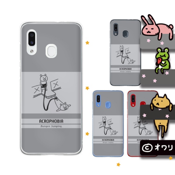 au Galaxy A30 SCV43 スマホ ケース カバー オワリ 「クマのバンジージャンプ」 グレー