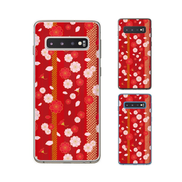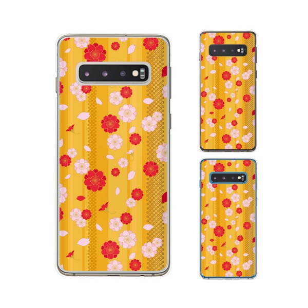 Galaxy S10 ( au SCV41 / docomo SC-03L) スマホ ケース カバー 和柄7 桜 黄色/赤/ピンク