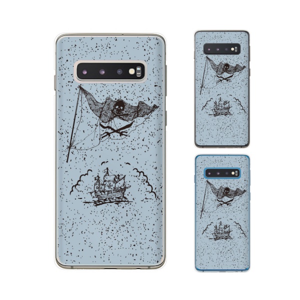 Galaxy S10 ( au SCV41 / docomo SC-03L) スマホ ケース カバー 海賊船 水色