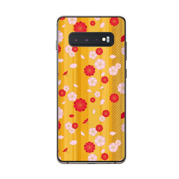Galaxy S10+ ( au SCV42 / docomo SC-04L) スマホ ケース カバー 和柄7 桜 黄色/赤/ピンク