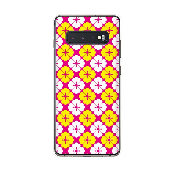 Galaxy S10+ ( au SCV42 / docomo SC-04L) スマホ ケース カバー 和柄9 花 ピンク/白/黄色