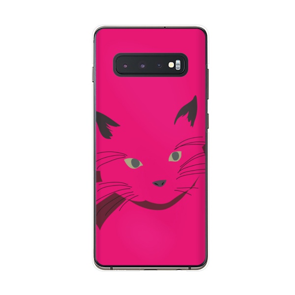 Galaxy S10+ ( au SCV42 / docomo SC-04L) スマホ ケース カバー 猫の顔3 リボン ピンク