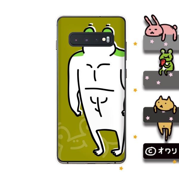 Galaxy S10+ ( au SCV42 / docomo SC-04L ) スマホ ケース カバー オワリ 「筋肉のあるカエル」 グリーン