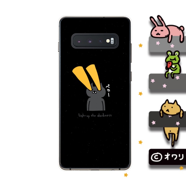 Galaxy S10+ ( au SCV42 / docomo SC-04L ) スマホ ケース カバー オワリ 「闇を照らすネコ」 ブラック