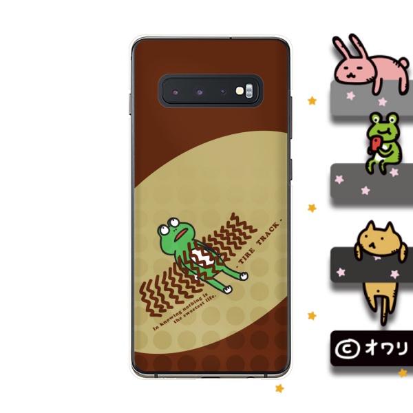 Galaxy S10+ ( au SCV42 / docomo SC-04L ) スマホ ケース カバー オワリ 「カエルとタイヤ跡」 レッド