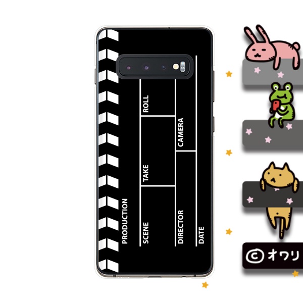 Galaxy S10+ ( au SCV42 / docomo SC-04L ) スマホ ケース カバー オワリ 「カチンコ」 ブラック