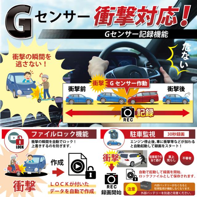 ドライブレコーダーは運転状況や交通事故を客観的に記録することを目的とした機器ですが、 全てを記録できることを保証した製品ではありません。