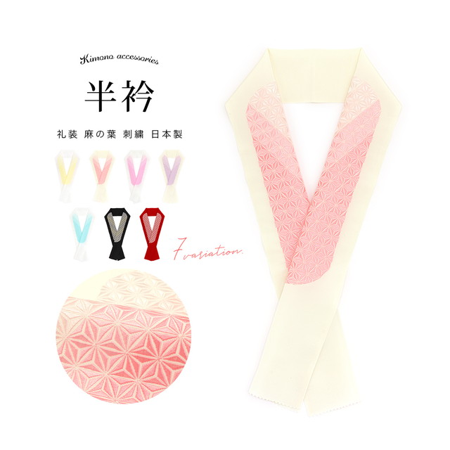 振袖 半衿 半襟 刺繍 成人式 白 クリーム 赤 黒 黄色 ピンク 紫 水色 麻の葉 婚礼 結婚式 着物 和服 和装小物 日本製 メール便対応