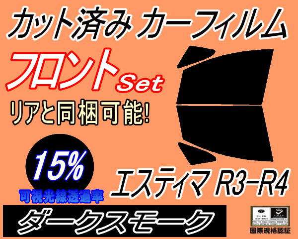 【送料無料】フロント (b) エスティマ R3 R4 (15%) カット済みカーフィルム 運転席 助手席 三角窓 左右セット スモークフィルム フロントドア 車種別 スモーク 車種専用 成形 フイルム 日よけ 窓 ガラス ウインドウ 紫外線 UVカット 30系 40系 MCR30W MCR40W ACR30 トヨタ