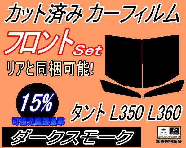 【送料無料】フロント (b) タント L350 L360 (15%) カット済みカーフィルム 運転席 助手席 三角窓 左右セット スモークフィルム フロントドア 車種別 スモーク 車種専用 成形 フイルム 日よけ 窓 ガラス ウインドウ 紫外線 UVカット L350S L360S カスタムも適合 ダイハツ