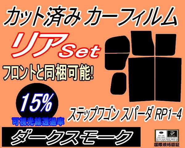 【送料無料】リア (b) ステップワゴン スパーダ RP1〜4 (15%) カット済みカーフィルム リアー セット リヤー サイド リヤセット 車種別 スモークフィルム リアセット 専用 成形 フイルム 日よけ 窓ガラス ウインドウ 紫外線 UVカット 車用 RP1 RP2 RP3 RP4 ホンダ