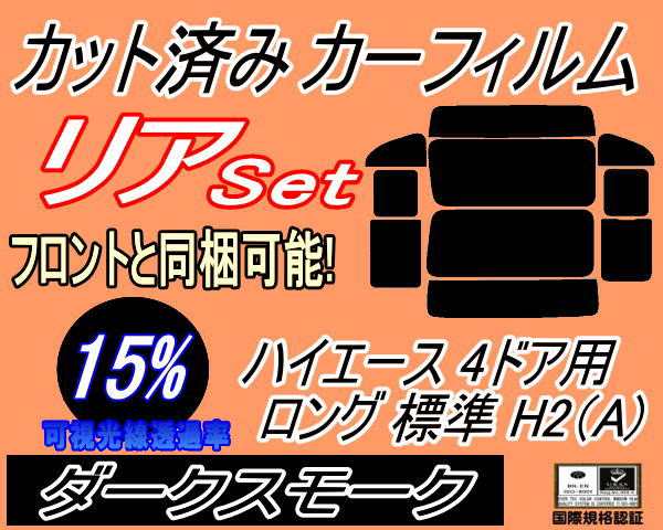 【送料無料】リア (b) ハイエース 4ドア ロング 標準 H2 Atype (15%) カット済みカーフィルム リアー セット リヤー サイド リヤセット 車種別 スモークフィルム リアセット 専用 成形 フイルム 日よけ 窓ガラス ウインドウ 車用 200系 KDH 200 201 205 206 TRH トヨタ