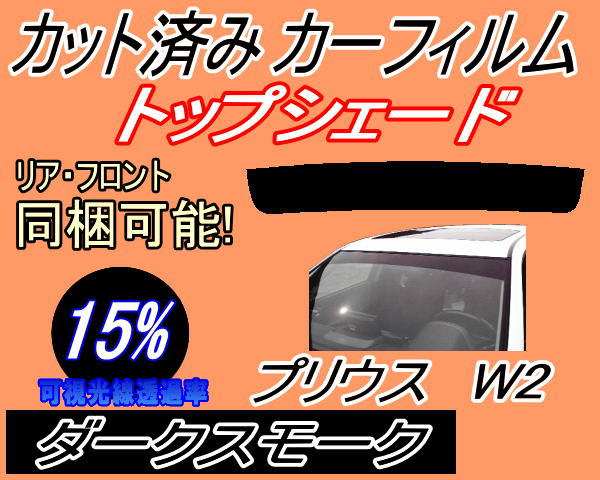 ハチマキ プリウス W2 (15%) カット済みカーフィルム バイザー トップシェード 車種別 スモーク 車種専用 スモークフィルム フロントガラス 成形 フイルム 日よけ 窓 ウインドウ 紫外線 UVカット NHW20 20系 トヨタ