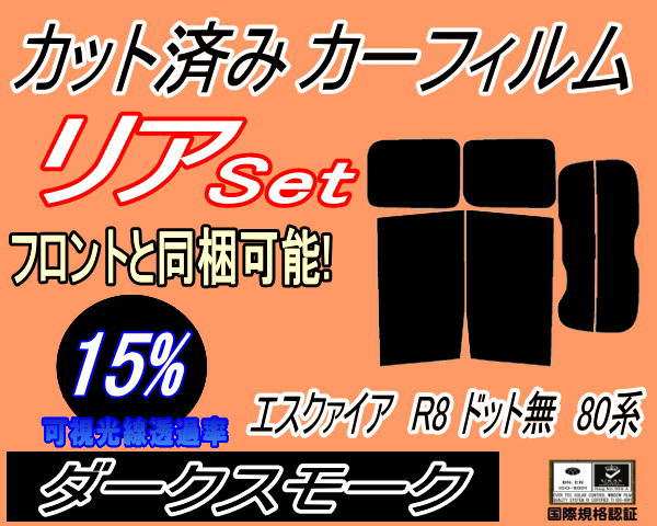 リア (b) エスクァイア R8 ドット無 80系 (15%) カット済みカーフィルム リアー セット リヤー サイド リヤセット 車種別 スモークフィルム リアセット 専用 成形 フイルム 日よけ 窓ガラス ウインドウ 紫外線 UVカット 車用 ZRR80 ZRR85 ZWR80 エスクワイア トヨタ