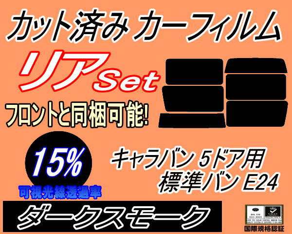 リア (b) キャラバン 5ドア 標準 バン E24 接着 5枚 (15%) カット済みカーフィルム リアー セット リヤー サイド リヤセット 車種別 スモークフィルム リアセット 専用 成形 フイルム 日よけ 窓ガラス ウインドウ 紫外線 UVカット 車用 VYE VTE VHE KRME VRE VWE ニッサン