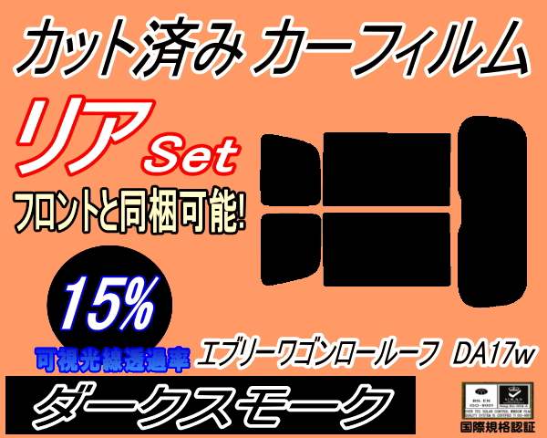 リア (s) エブリィワゴン ロールーフ DA17W (15%) カット済みカーフィルム リアー セット リヤー サイド リヤセット 車種別 スモークフィルム リアセット 専用 成形 フイルム 日よけ 窓ガラス ウインドウ 紫外線 UVカット 車用 エブリー エブリーワゴン スズキ
