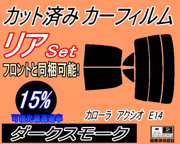 リア (s) カローラアクシオ E14 (15%) カット済みカーフィルム リアー セット リヤー サイド リヤセット 車種別 スモークフィルム リアセット 専用 成形 フイルム 日よけ 窓ガラス ウインドウ 紫外線 UVカット 車用 NZE141 ZRE142 NZE144 トヨタ
