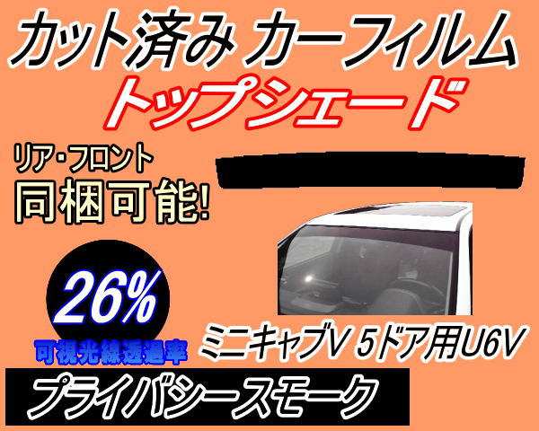 【送料無料】ハチマキ ミニキャブV 5ドア U6V (26%) カット済みカーフィルム バイザー トップシェード 車種別 スモーク 車種専用 スモークフィルム フロントガラス 成形 フイルム 日よけ 窓 ウインドウ 紫外線 UVカット U61V U62V ミニキャブバン ミツビシ