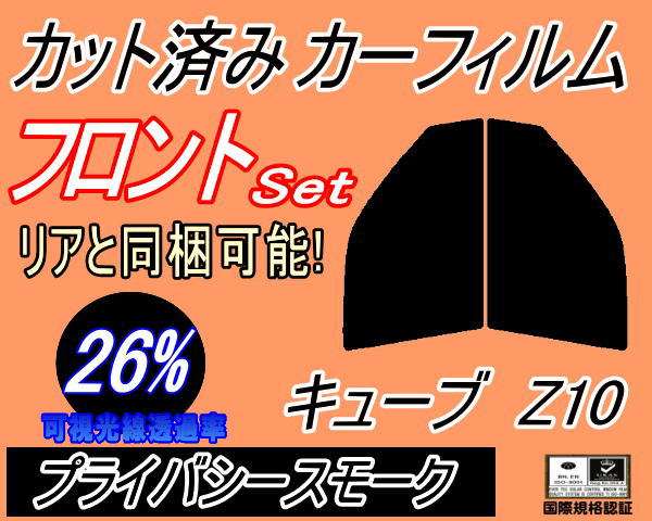 【送料無料】フロント (s) キューブ Z10 (26%) カット済みカーフィルム 運転席 助手席 三角窓 左右セット スモークフィルム フロントドア 車種別 スモーク 車種専用 成形 フイルム 日よけ 窓 ガラス ウインドウ 紫外線 UVカット ニッサン