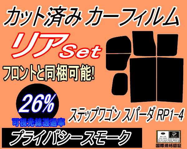 【送料無料】リア (b) ステップワゴン スパーダ RP1〜4 (26%) カット済みカーフィルム リアー セット リヤー サイド リヤセット 車種別 スモークフィルム リアセット 専用 成形 フイルム 日よけ 窓ガラス ウインドウ 紫外線 UVカット 車用 RP1 RP2 RP3 RP4 ホンダ