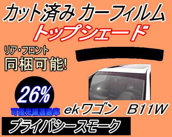 ハチマキ ekワゴン B11W (26%) カット済みカーフィルム バイザー トップシェード 車種別 スモーク 車種専用 スモークフィルム フロントガラス 成形 フイルム 日よけ 窓 ウインドウ 紫外線 UVカット B11 ミツビシ